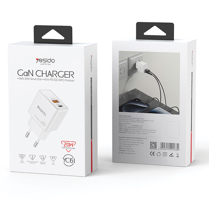 شارژر دیواری 20 وات یسیدو مدل YC61: راهکاری سریع، مطمئن و کارآمد برای تأمین نیازهای شارژ دستگاههای هوشمند شما