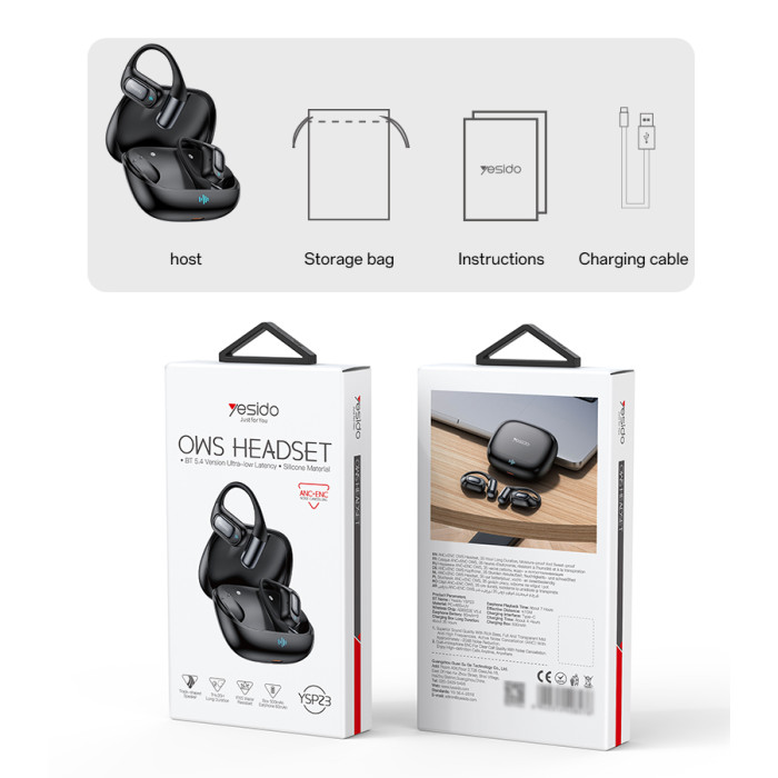- 1. هندزفری بیسیم با صدای واضح. 2. اتصال سریع و پایدار بلوتوث. 3. یسیدو مدل YSP23، راحت و سبک. 4. عمر باتری بالا برای استفاده طولانی.